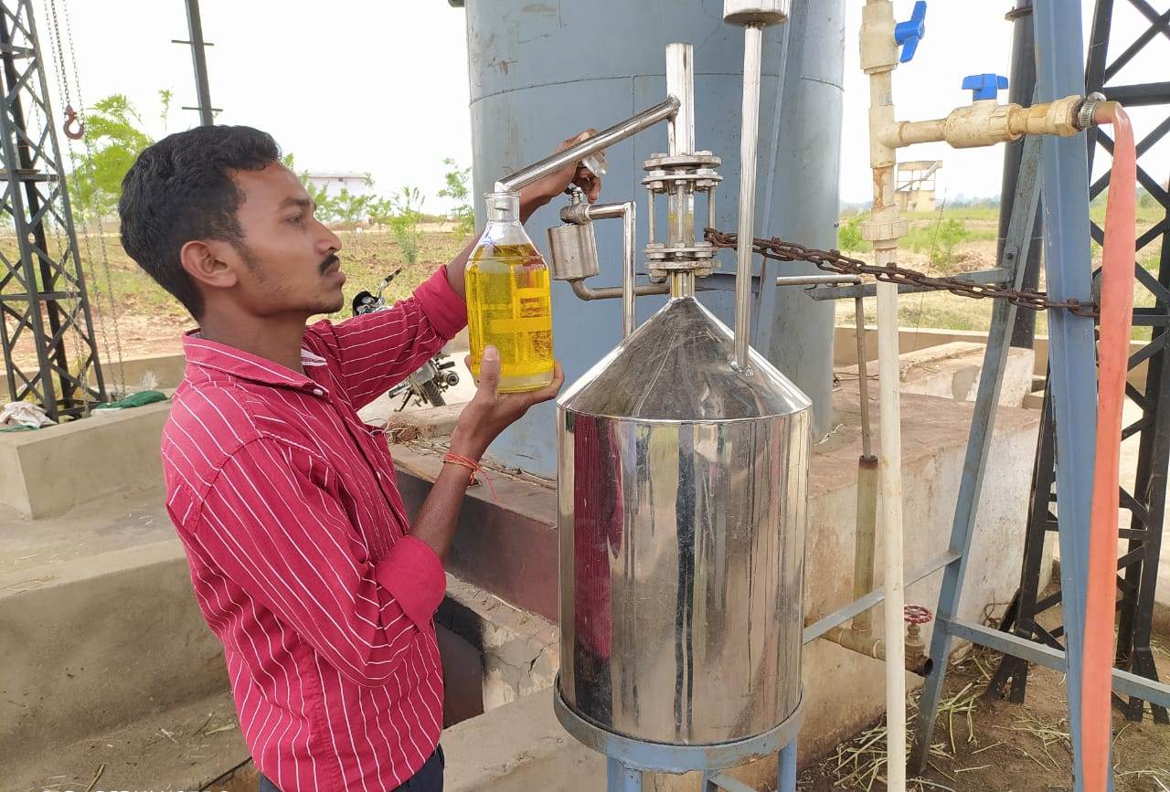सौंफ के बीज के क्षत्रक तोडऩे के बाद पुरे पौधे को काटकर 50 प्रतिशत नमी की स्थिति में सूखी पत्तियों व टहनियों से सौंफ का सगंध तेल प्राप्त किया जा सकता है। उपलब्ध आंकड़ों के अनुसार सौंफ के बीज में 2 प्रतिशत, पत्तियों में 0.01 प्रतिशत व सूखी टहनियों में 0.22 प्रतिशत तक सगंध तेल पाया जाता है। सगंध तेल निष्कासन की अधिक मात्रा के लिए 50 प्रतिशत सूखी पत्तियां व टहनिया व 50 प्रतिशत हरी पत्तियां व टहनिया का प्रयोग किया जा सकता है। 100 किलोग्राम हब्र्स से 200 से 220 ग्राम सगंध तेल प्राप्त किया जा सकता है। एक एकड़ क्षेत्रफल से करीब 500 से 600 किलोग्राम हब्र्स प्राप्त होता है। इस तरह एक एकड़ से 1.0 से 1.2 किलो सौंफ का सगंध तेल निकाला जा सकता है। बाजार में विपणन हेतु सौंफ के सगंध तेल की कीमत लगभग 3-5 हजार रुपये प्रति किलोग्राम है।